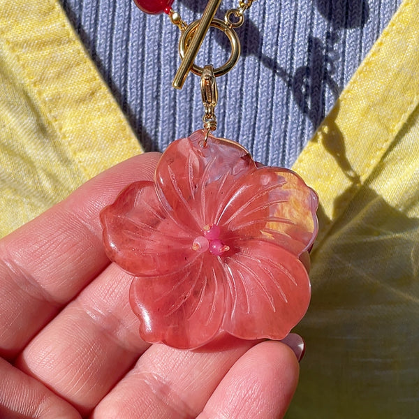 'NEW' RED HIBISCUS FLOWER Charm | Gold