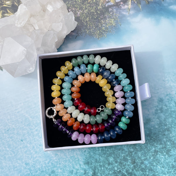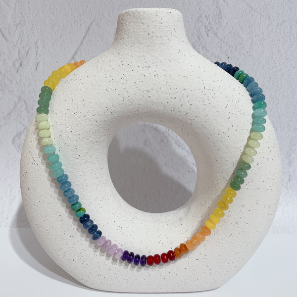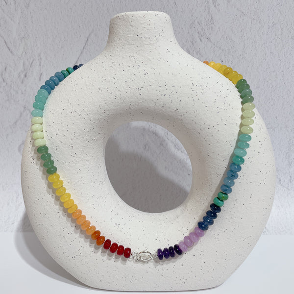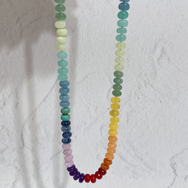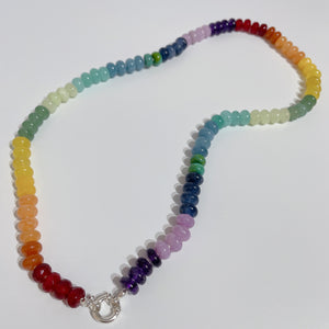 RAINBOW Beaded Gemstone Necklace | Silver | 21" | ONE OF A KIND