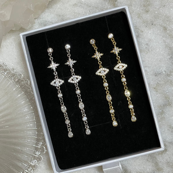 A lovely design that can go from day to night. Wear these for their beauty or as talismans with meaning. These mix well with our other evil eye and star pieces.